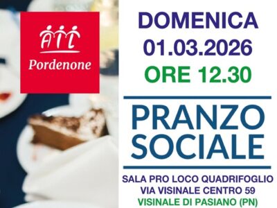 Ail Pordenone invita soci e volontari al pranzo del 1 Marzo Alle ore 12.30 presso la pro loco Quadrifoglio a Visinale di... Leggi Ora