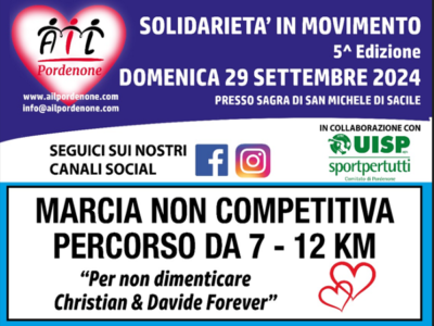 Solidarietà in movimento 2024 – Marcia non competitiva con percorso da 7 a 12Km. Info e prenotazioni in locandina. Contattaci per prenotare!