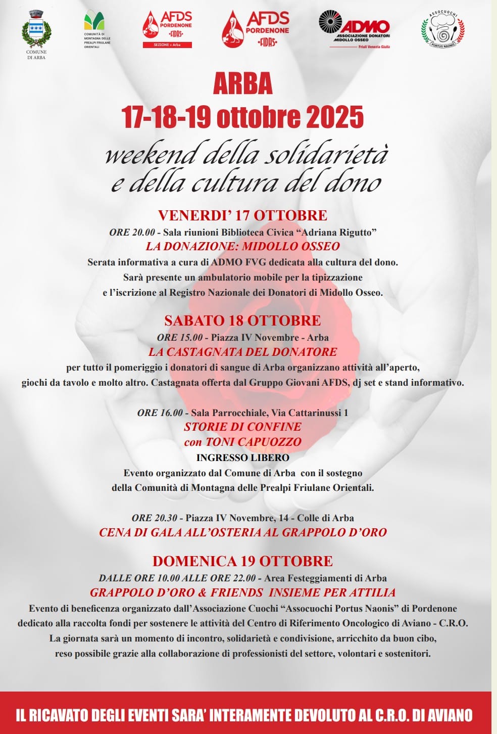 Domenica 19 ottobre saremo presenti con uno stand informativo ad Arba insieme a tutte le associazioni che collaborano con il CRO di Aviano